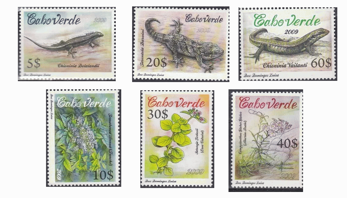 カーボベルデ切手 2009年 カーボベルデの固有種 トカゲ 6種