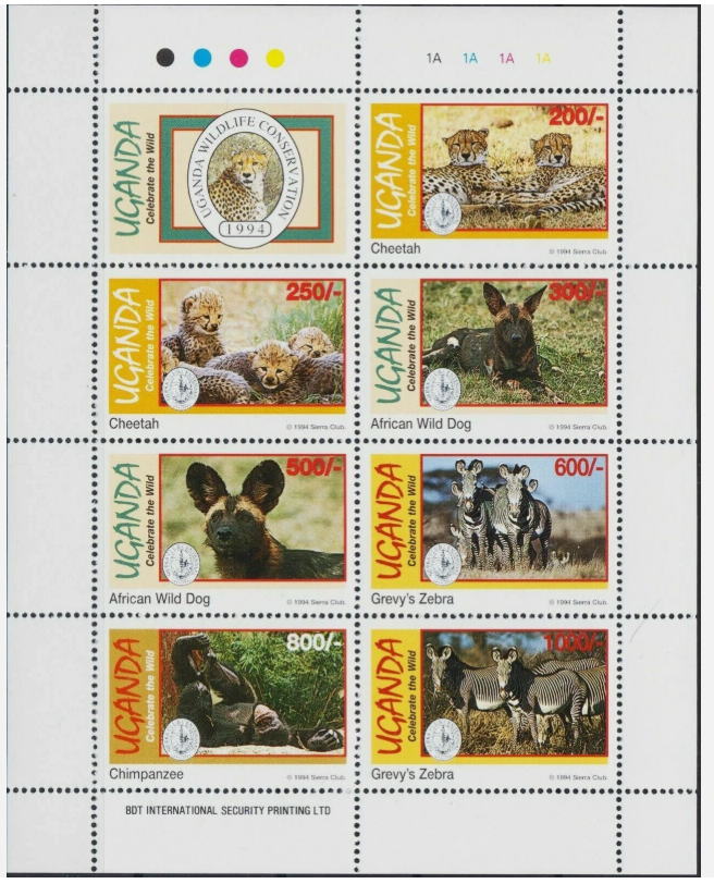 426023 切手 ウガンダ切手 1994年 環境保護団体100周年 動物 野生の猫 チーター 7種