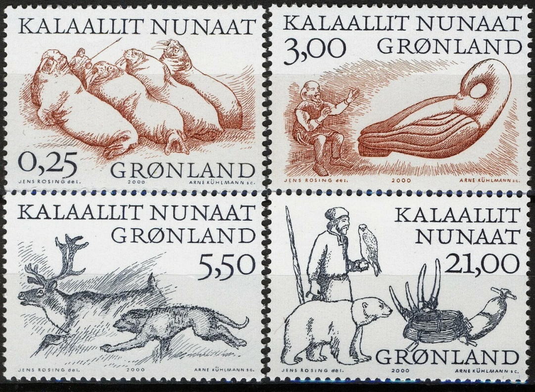 726022 切手 グリーンランド切手 2000年 ヴァイキング時代 ホッキョクグマ 鳥 4種