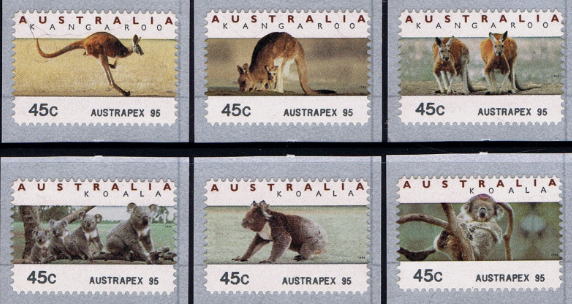 626026 切手 オーストラリア切手 1994年 オーストラリアの野生動物 カンガルーとコアラ 6種