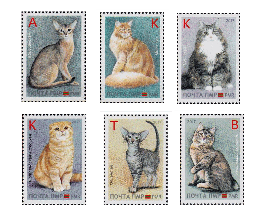 926052 切手 モルドバ 沿ドニエストル共和国切手 2017年 ネコ 6種