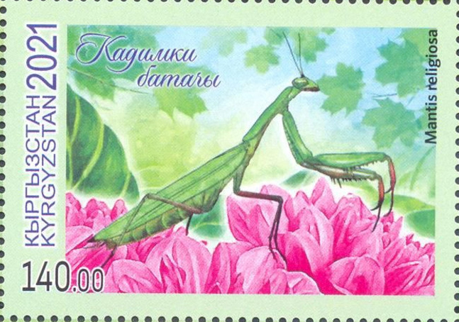 126069 切手 キルギス切手 2021年 昆虫 ヨーロッパカマキリ 1種