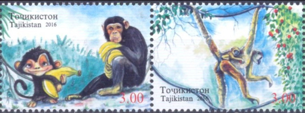 826065 切手 タジキスタン切手 2016年 サル 旧暦 申年 2種