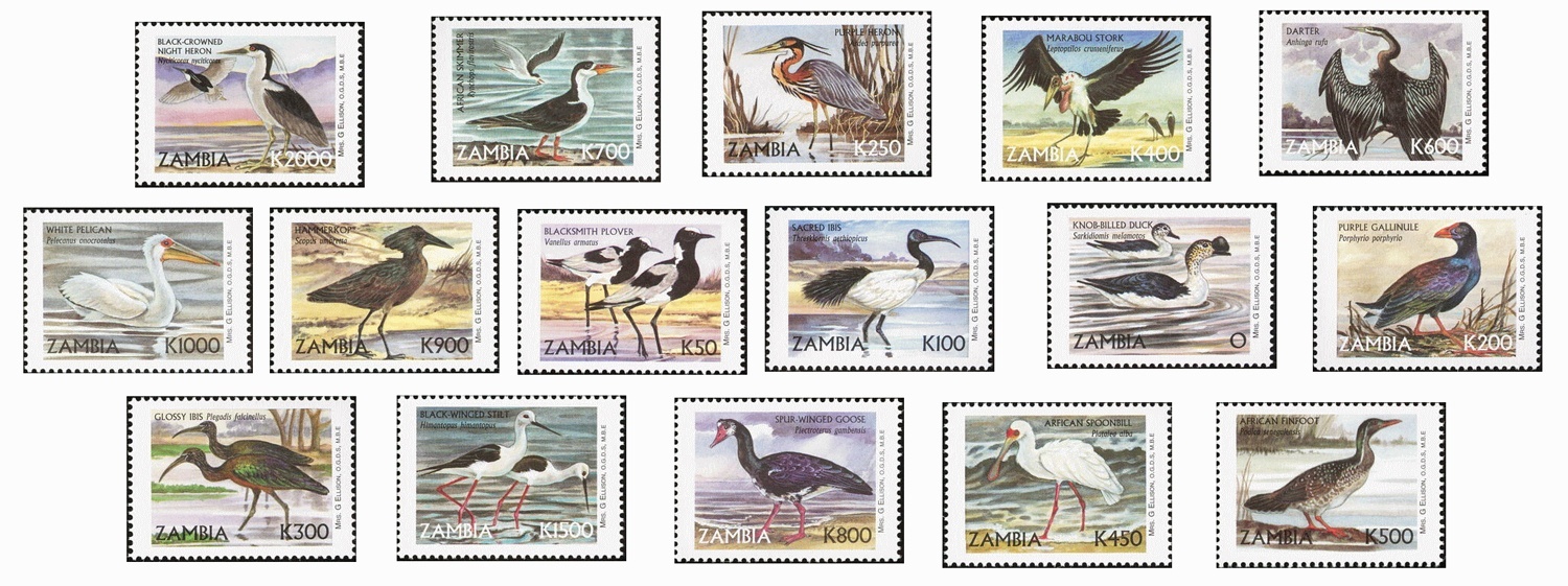 625968 切手 ザンビア切手 1999年 水鳥 16種