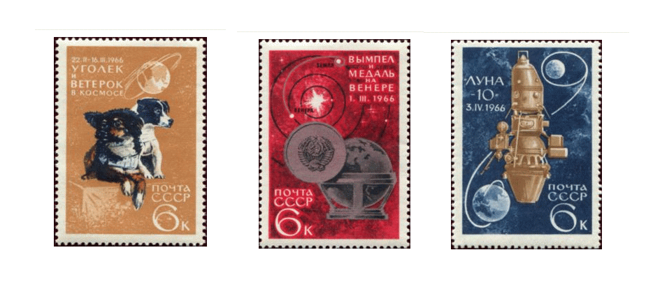 826195 切手 ロシア 旧ソ連切手 1966年 宇宙 犬 ソ連の宇宙開発の成果 3種