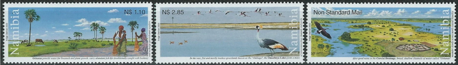 ナミビア切手 2003年 オマディヤ湖の鳥 アオハシコウ 鳥 湿地 3種
