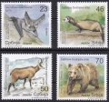 セルビア切手 2019年 保護動物種 ヒグマ コウモリ 4種