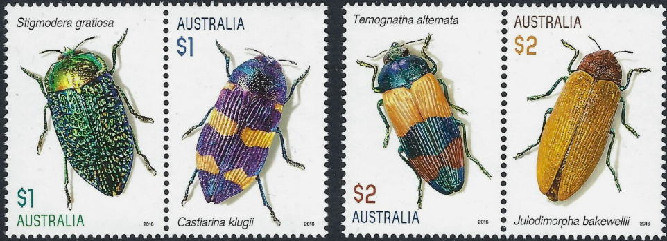 3. > オーストラリア切手 2016年 カブトムシ 昆虫 4種