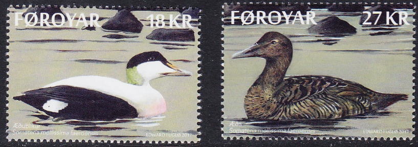 フェロー諸島切手 2017年 鳥 フェロー諸島の大きな鴨 2種