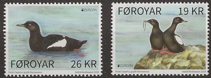 フェロー諸島切手 2019年 国鳥 ヨーロッパ C.E.P.T. 2種