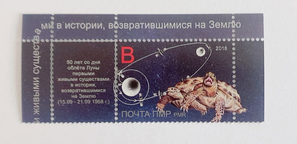 モルドバ 沿ドニエストル共和国切手 2018年 初めて月を周回した動物の50周年 宇宙 カメ 1種
