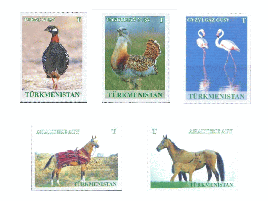 トルクメニスタン切手 2016年 鳥 ムナグロシャコ 馬 5種