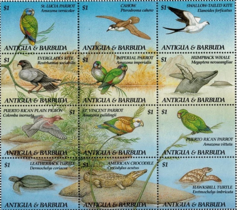 アンティグア・バーブーダ切手 1993年 絶滅危惧種 鳥 12種